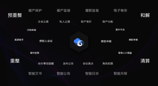 管理人工作平台可实现债权人异地在线债权申报、管理人进行云上债权审查、自动生成债权登记册、自动生成债权表、生成债权审查结论、召开网络债权人会议、自动统计会议签到和表决明细、监控参会情况、异议申请、会所财务审计、债务人核实、债务人履职监督、用章管理、案款分配、履职风险提示、文书送达、公告送达等一体化的智能解决方案。